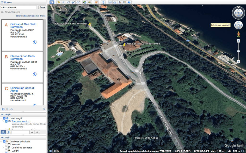 Davanti al San Carlo di Arona ci sono 2 parcheggi, ci troveremo davanti a quello gratuito sterrato alla destra del Collegio De Filippi