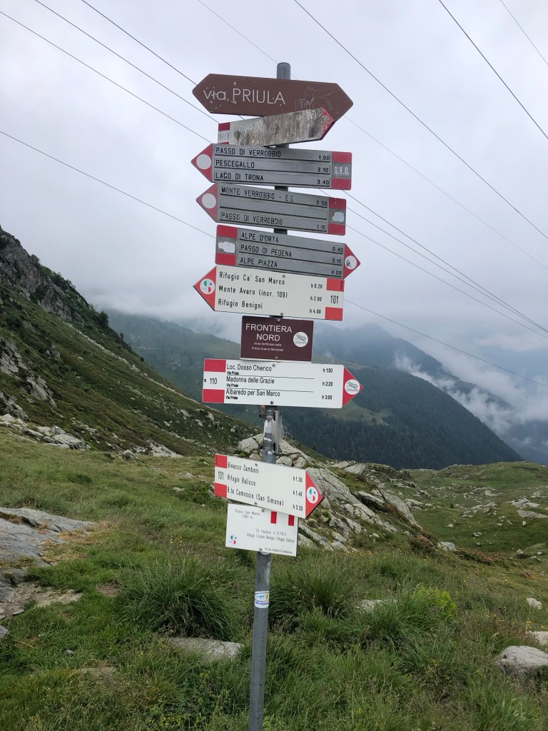 Si scende l’interminabile versante valtellinese del San Marco e alle 12.30 sono alle Cascate dell’Aquafraggia per la pausa pranzo; vorrei dormire tutto il giorno, ma mi concedo solo un’oretta cullato dallo scrosciare della cascata alle mie spalle.