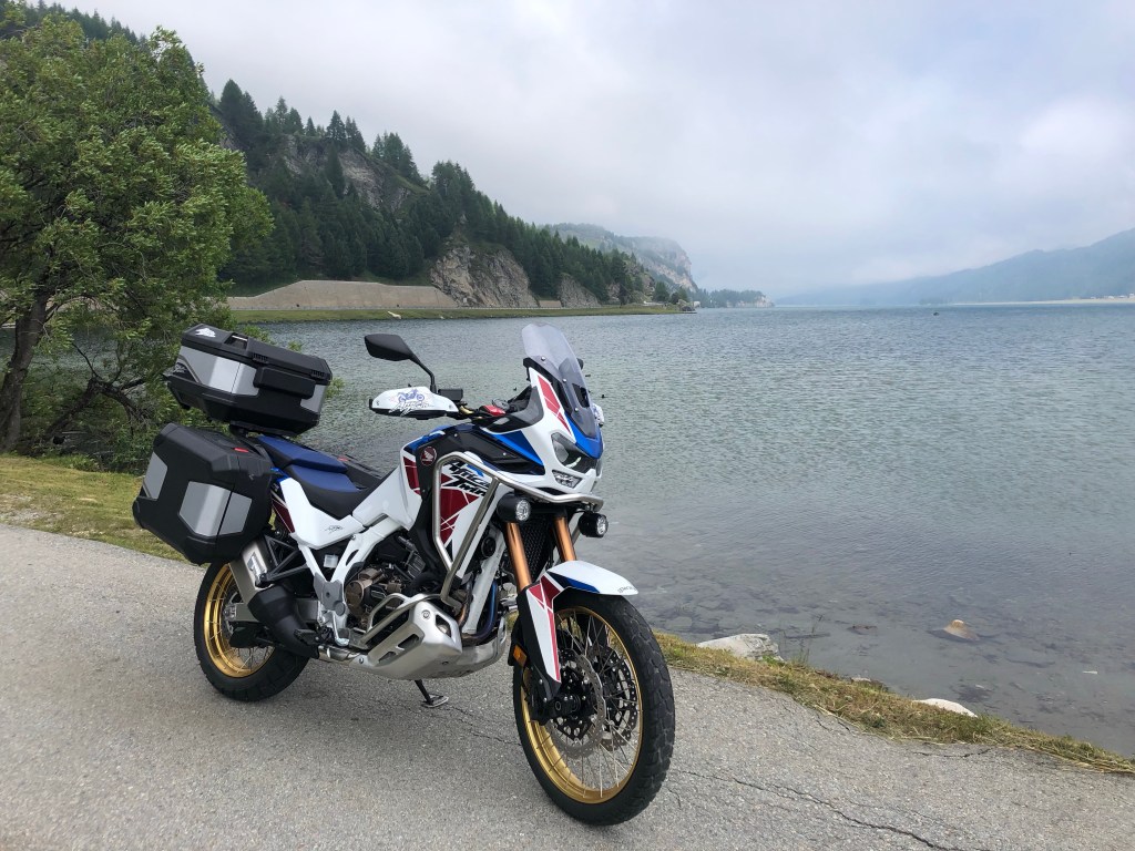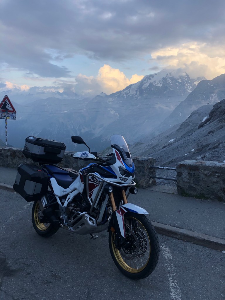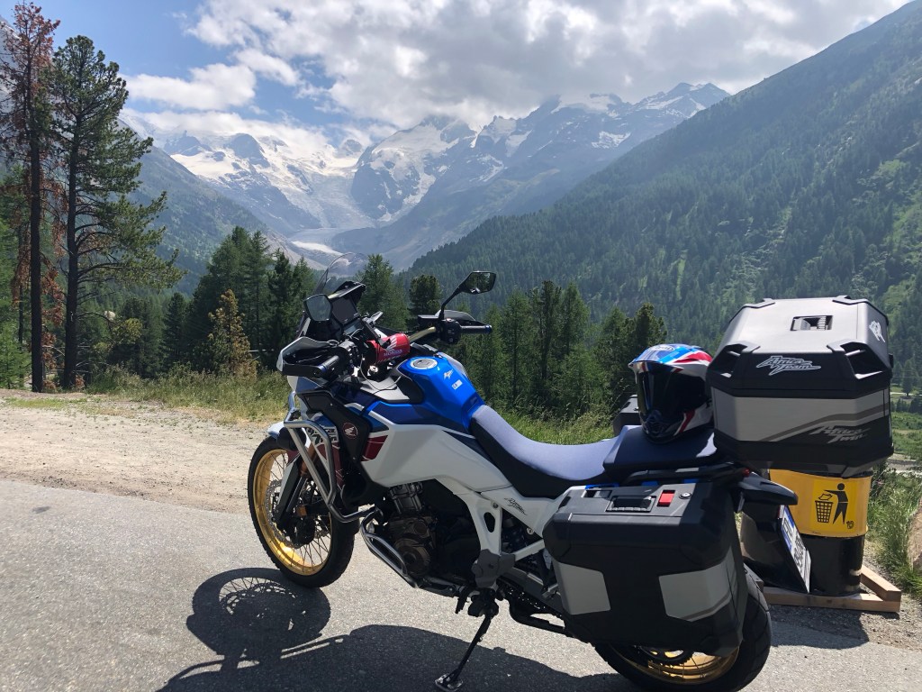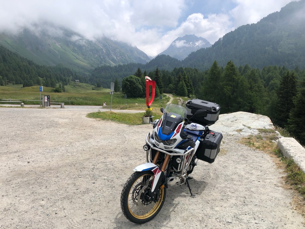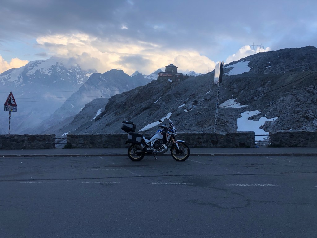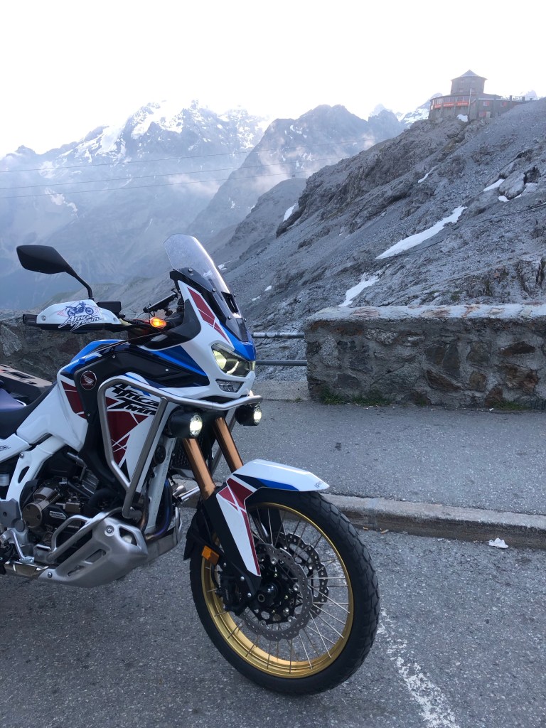 Parcheggio la moto vista ghiacciaio e mi fermo un attimo a guardare la moto: un’impresa che credevo impossibile è stata realizzata con un grande dispendio di energie.